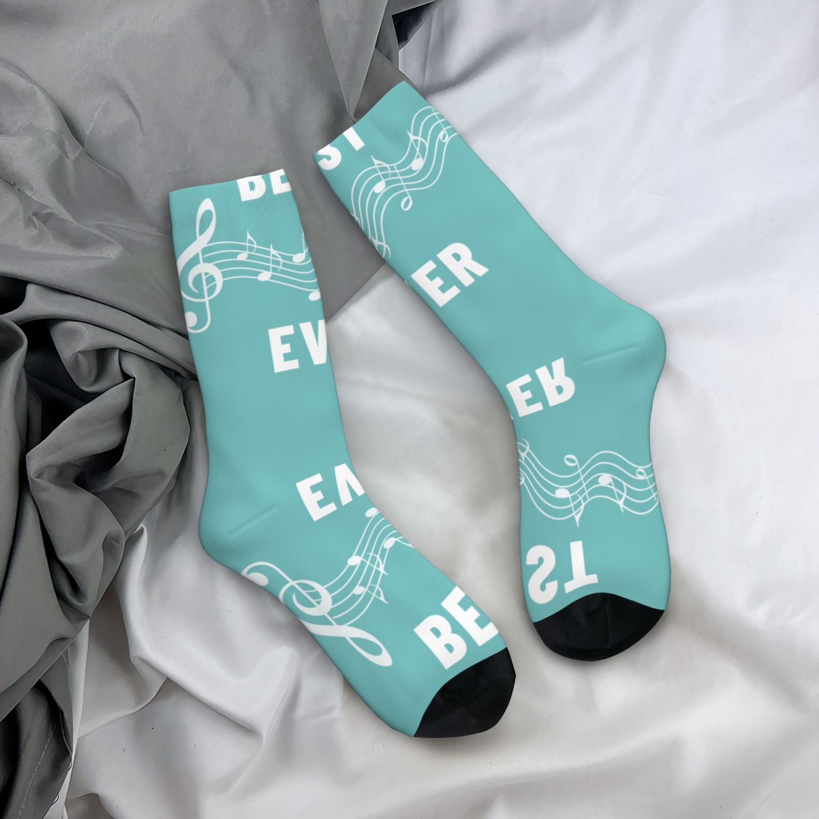 Best Dad Ever Music Note Casual Sock Fun Colorful Socks Patterned Athletic Crew Sock Hiking Socks Unisex Outdoor Sport Running