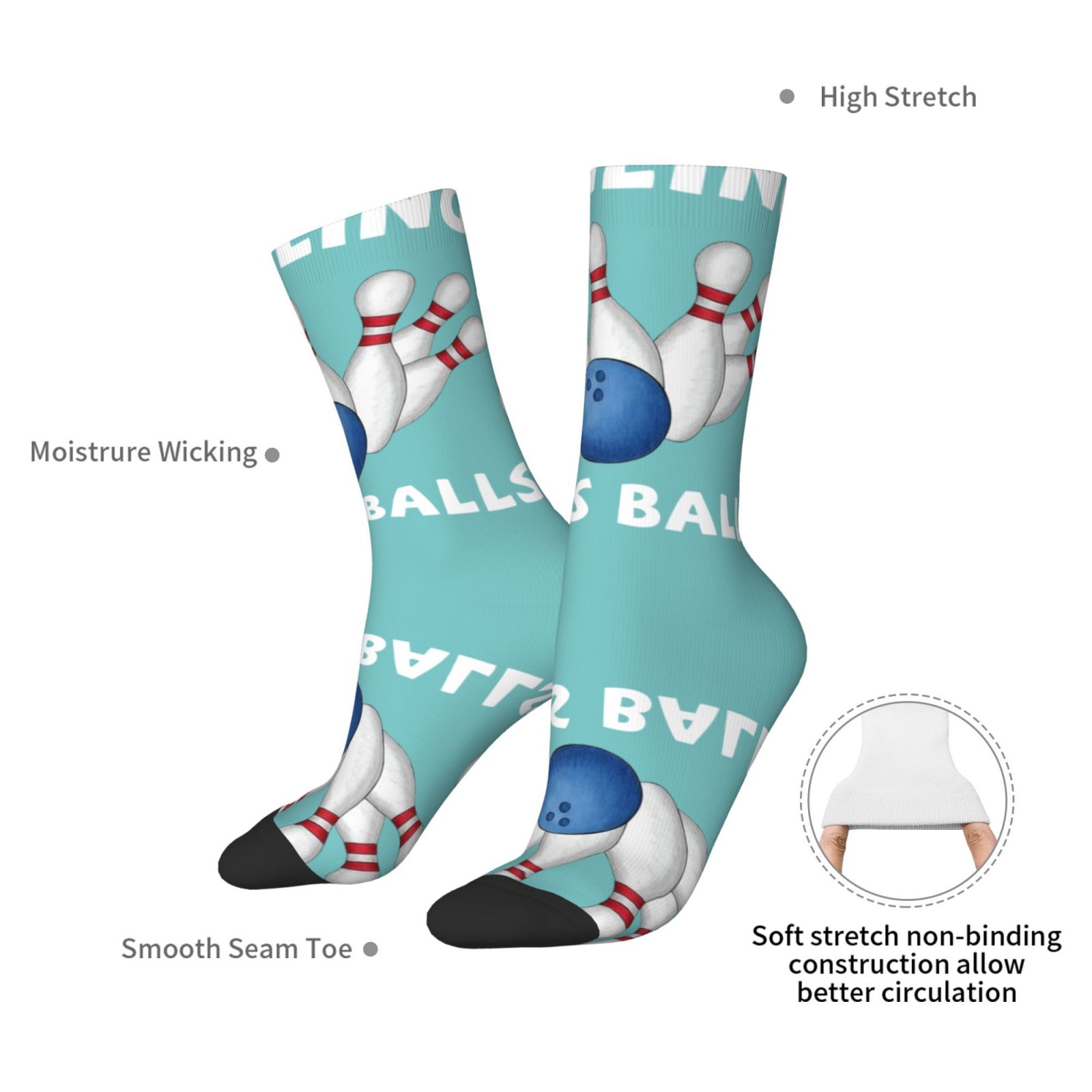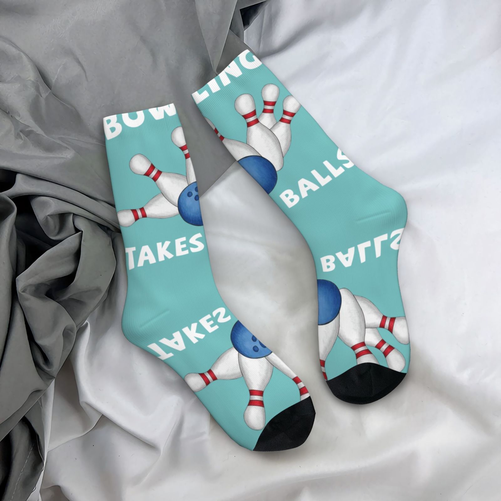 Bowling Takes Balls Casual Sock Fun Colorful Socks Patterned Athletic Crew Sock Hiking Socks Unisex Outdoor Sport Running