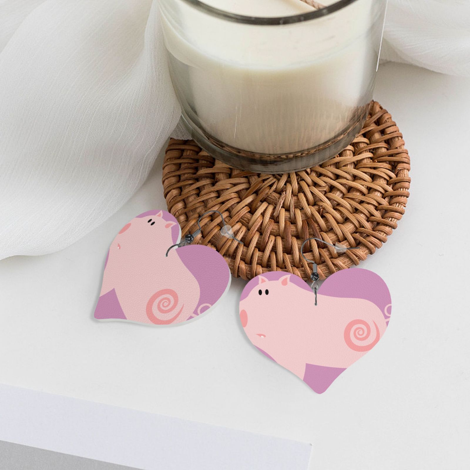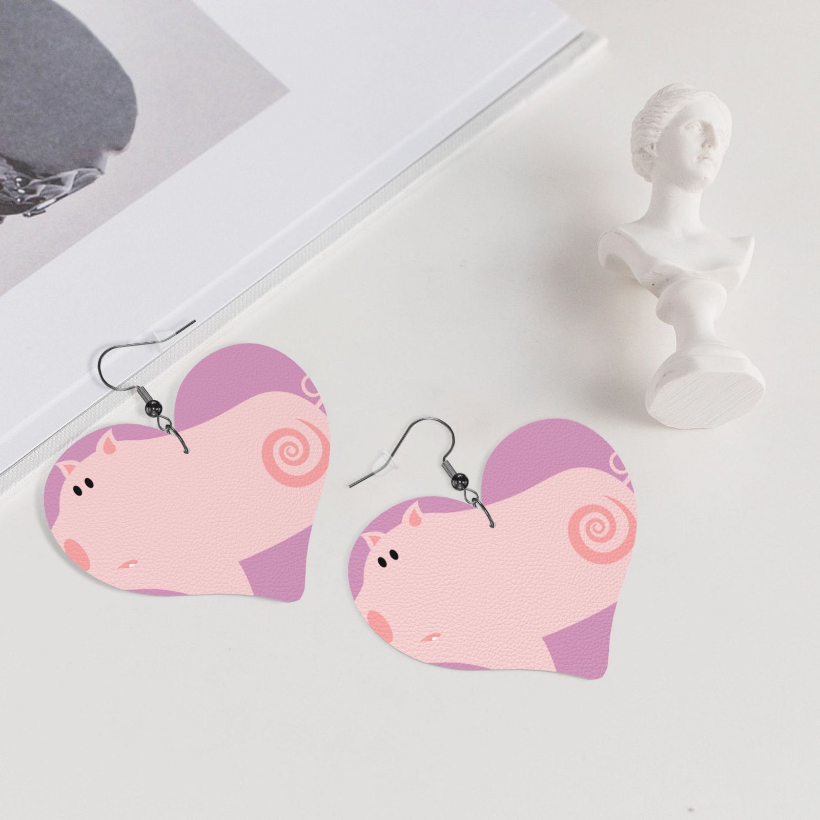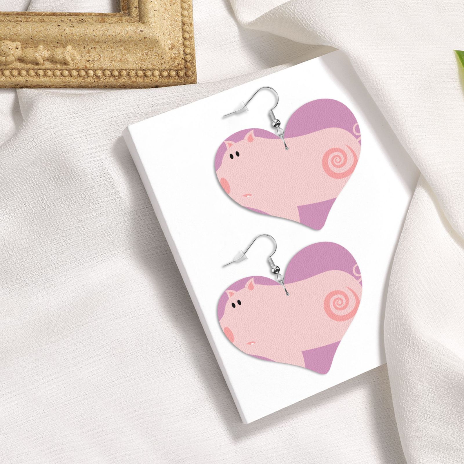 Gravity Falls Pig Leather Earrings Personality Dangle Drop Heart Earrings Jewelry Fashion Gift Lightweight For Women