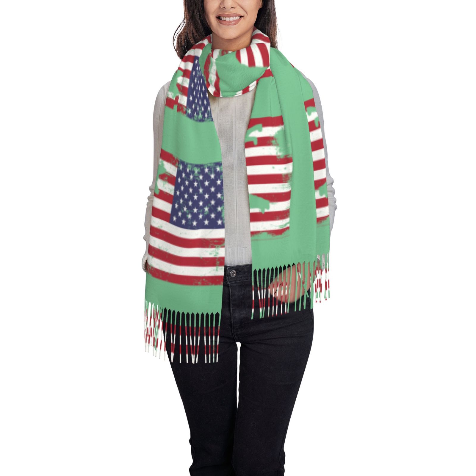 Patriotic Australian Cattle Dog USA FlagWinter Scarf Shawl Tassel Scarves Wraps Warm Fashion Shawls Wraps Large Scarfs Women