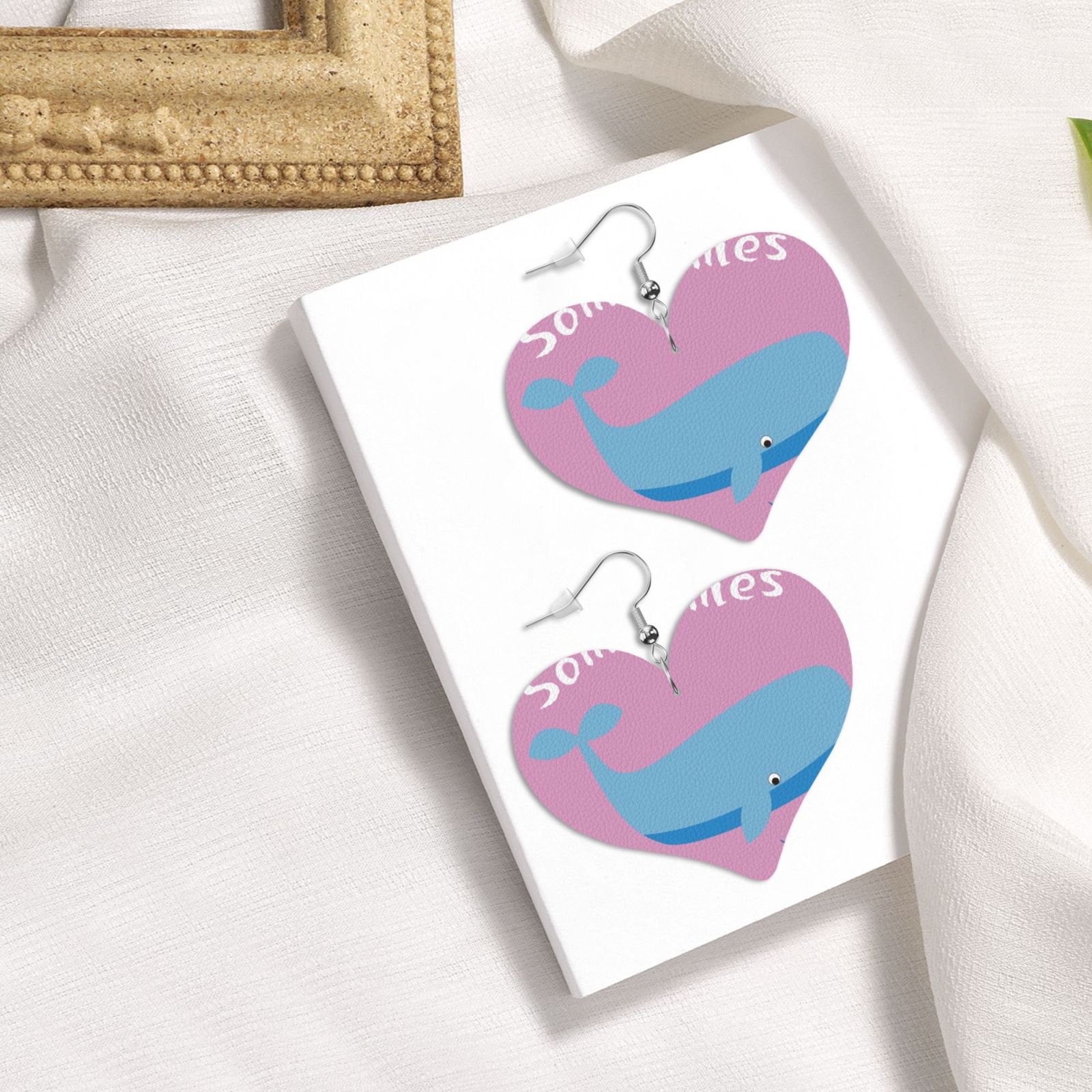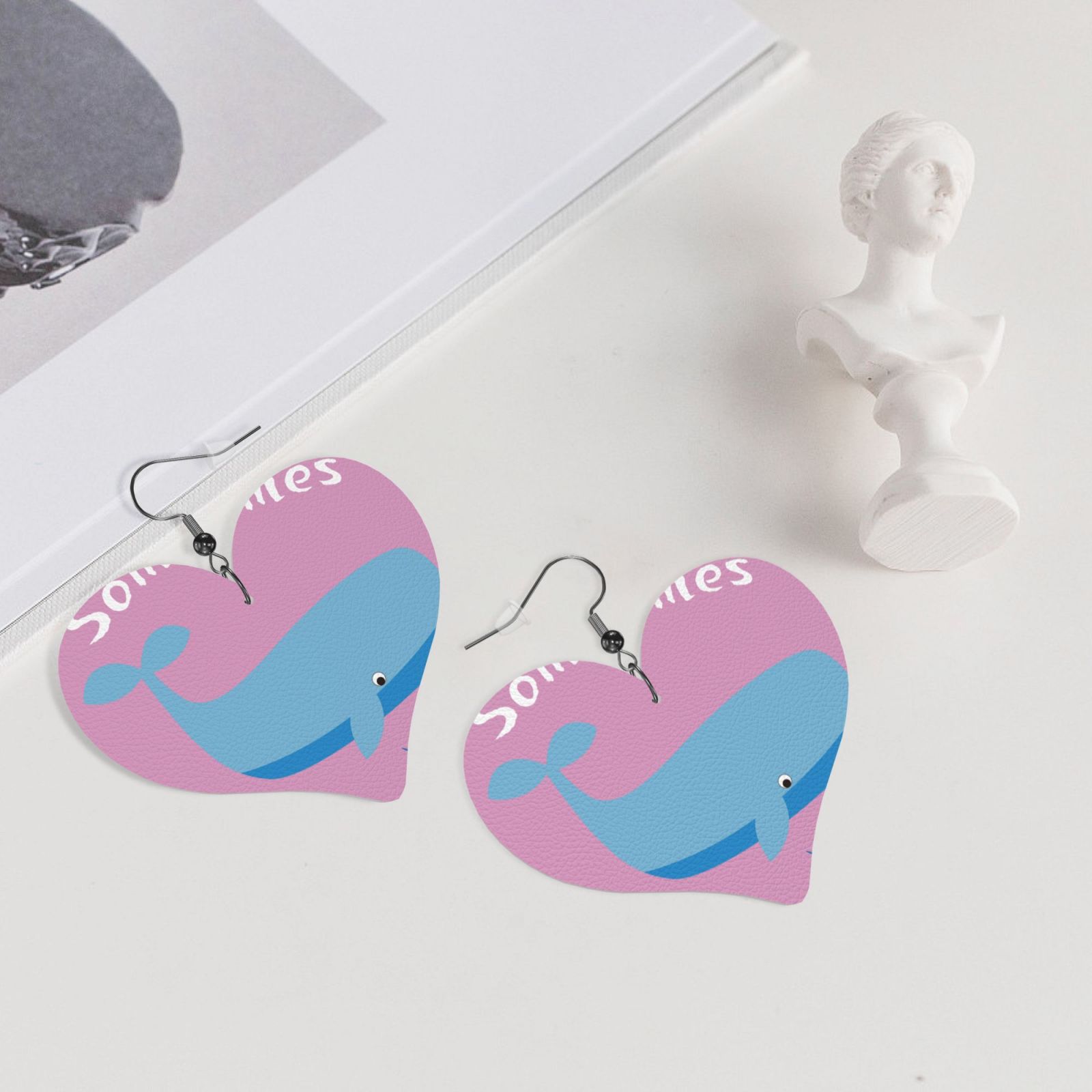 Sometimes I Whale A Lot Leather Earrings Personality Dangle Drop Heart Earrings Jewelry Fashion Gift Lightweight For Women